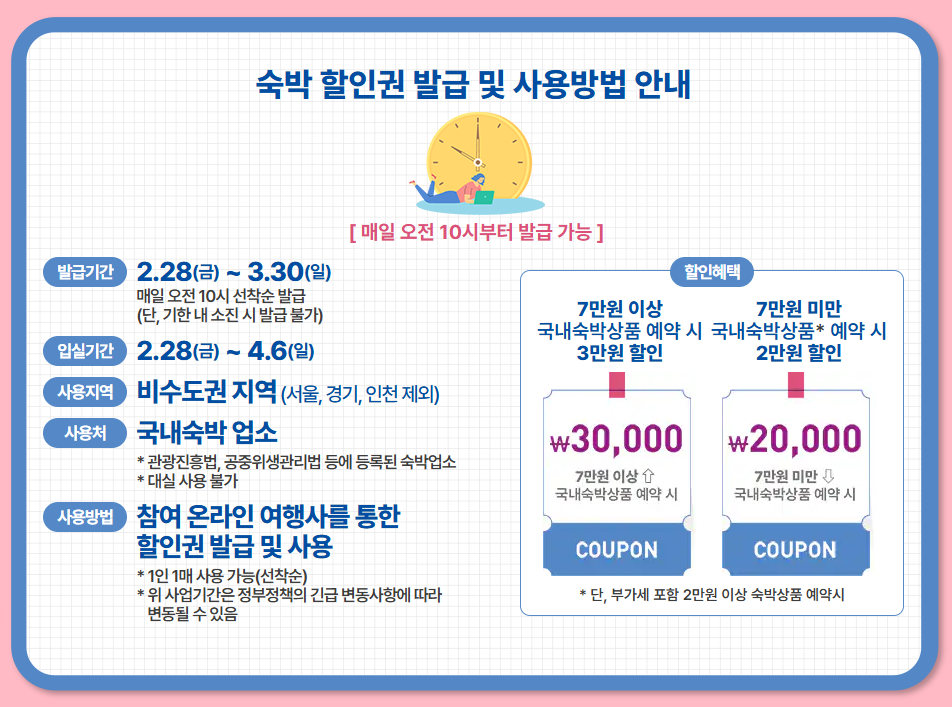 - 숙박 할인권 총 30만 장 배포