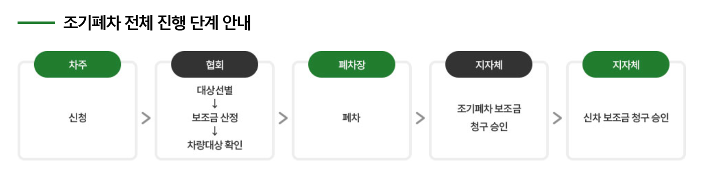 - 한국자동차환경협회: 조기폐차 접수 및 상담 전담