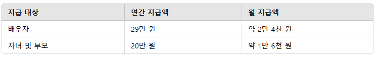 2024년 기준 가족연금의 지급 금액은 다음과 같습니다.