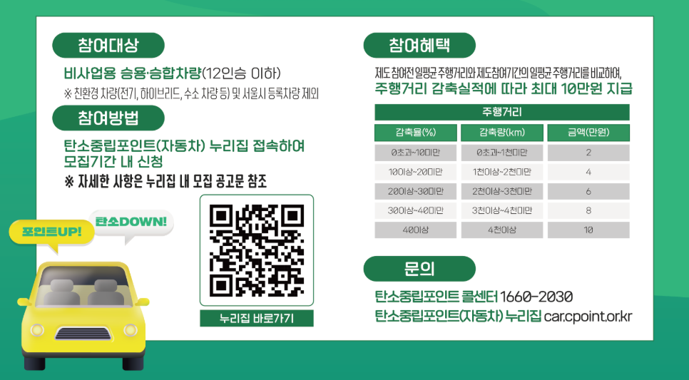 더 많은 사람들이 탄소중립포인트 자동차 제도에 관심을 갖고 참여할 수 있도록 주변에도 널리 알려 주시기 바랍니다.