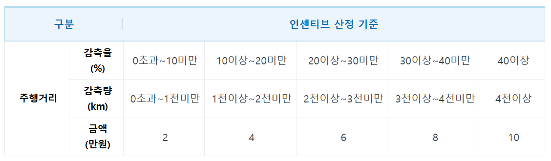 탄소중립포인트 자동차 제도는 주행거리 감축률 또는 감축량 중 유리한 실적으로 적용하여 인센티브를 지급합니다.