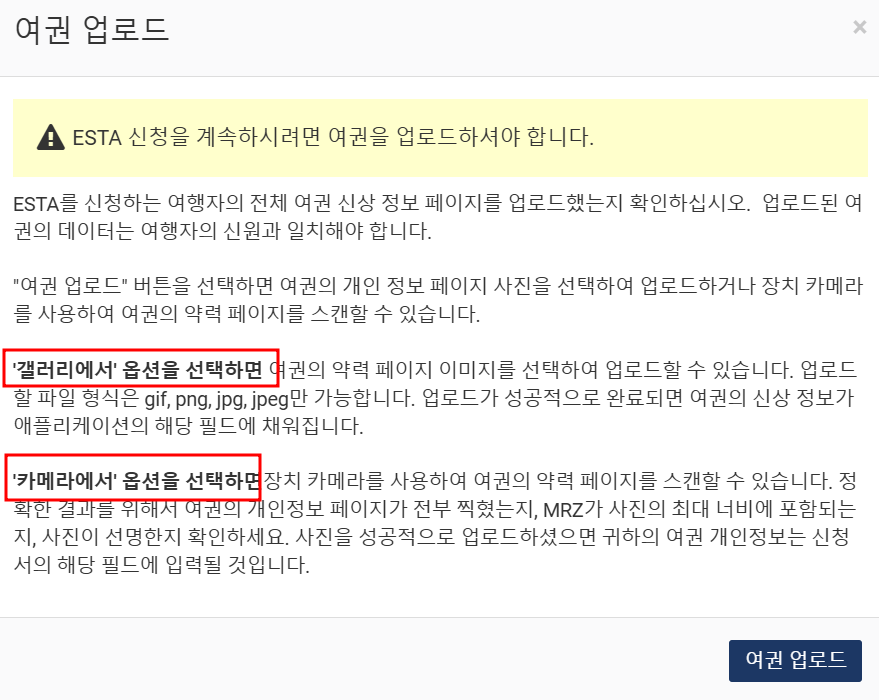신규 신청의 경우 여권 업로드를 하셔야 합니다. 사전에 스캔을 하셔서 미리 준비하시면 좋습니다.