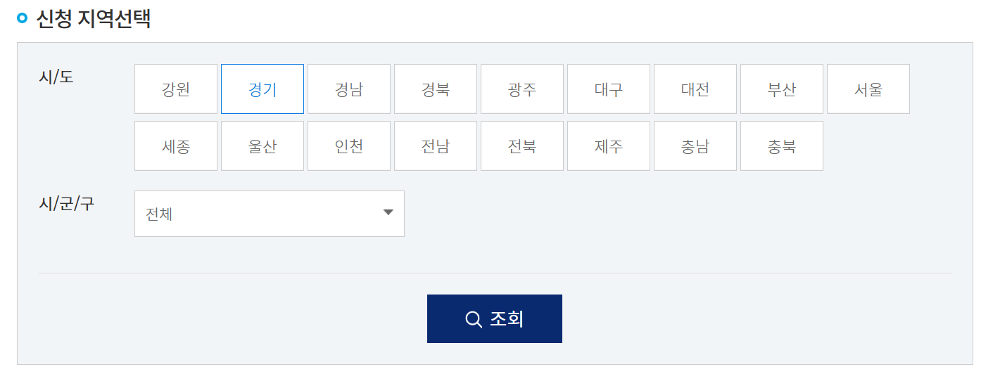 2. ‘개인 이용권 신청’ 탭에서 신청 지역을 선택하고 약관에 동의합니다.