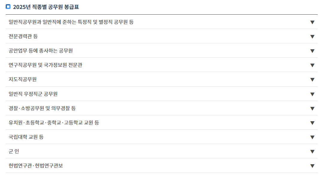 이 외에도 인사혁신처 홈페이지에 들어가시면 직책별로 봉급표를 확인하실 수 있습니다.