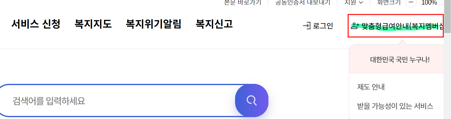 복지로 홈페이지