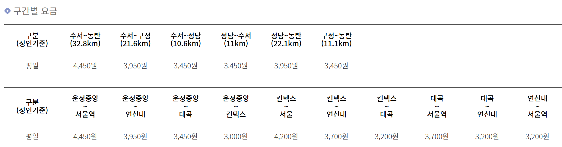 요금: 기본 3,200원 (운정중앙~서울역 4,450원)